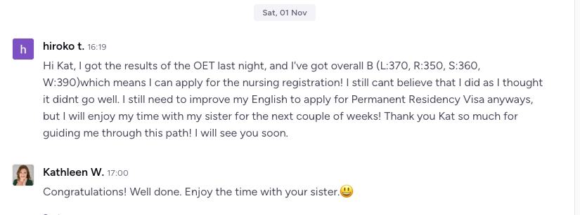 Welcome to English by Kate. I help nurses (you) understand what it takes to confidently ace the OET and fast-track your dream of working as a nurse in an English-speaking country, even if you’ve failed before.